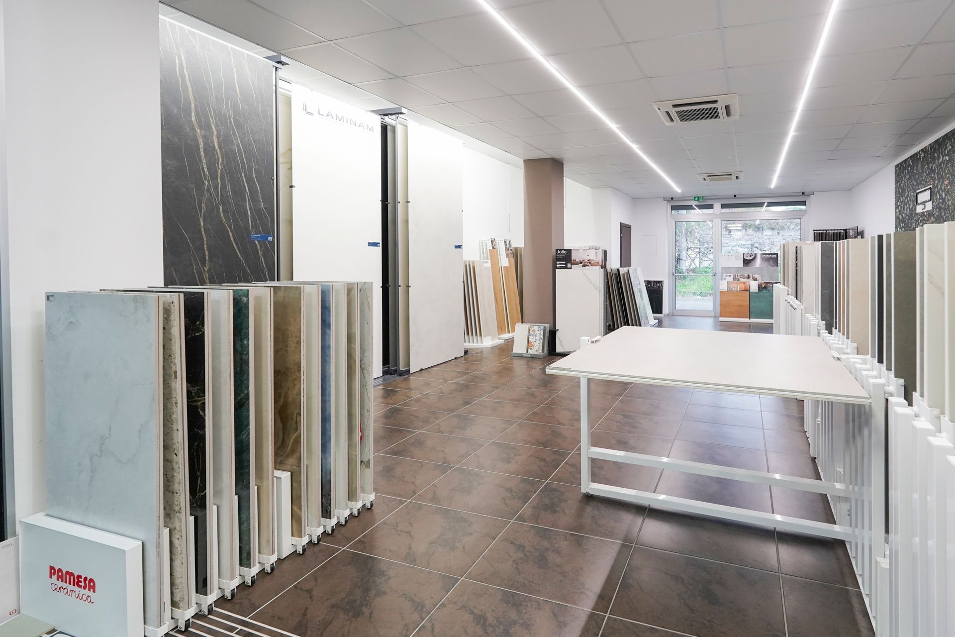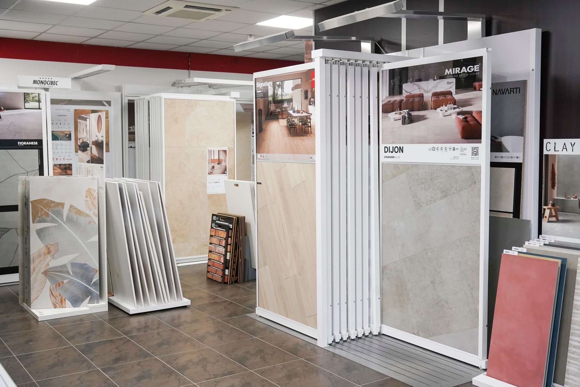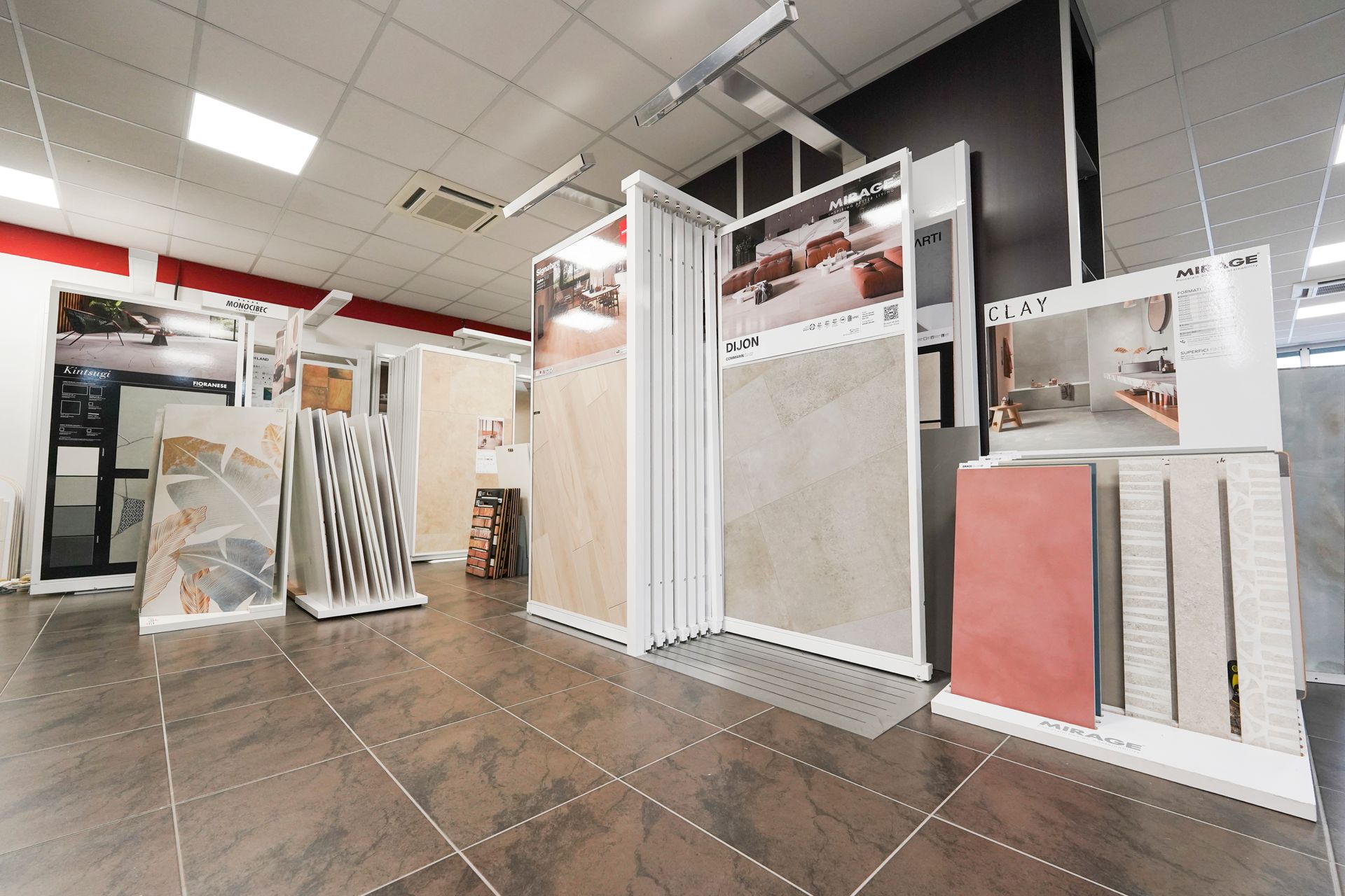 Nel nostro ampio showroom è possibile visionare direttamente una vasta gamma di piastrelle in ceramica, ma anche di pavimenti in marmo, gres, legno e pietra, con soluzioni versatili e in linea con le ultime tendenze dell’interior design. La nostra esposizione è pensata per offrire ispirazione, ma anche per guidare nella scelta del materiale più adatto, con supporto tecnico qualificato.